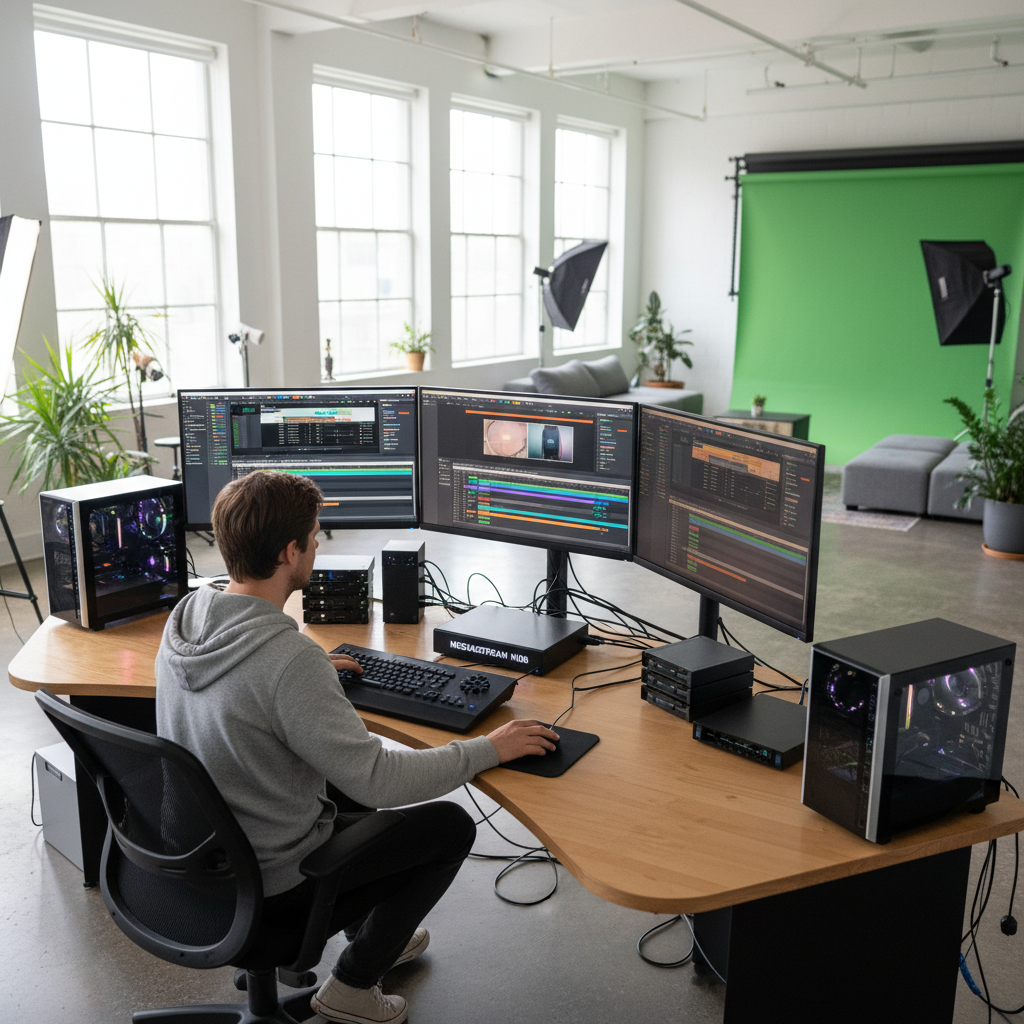Professional-grade studio setup for video editing and content creation